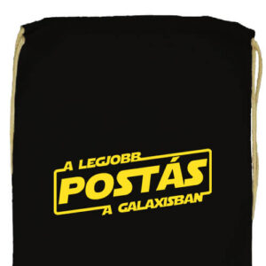 A legjobb postás a galaxisban - Basic tornazsák. A tornazsák vagy hátizsák kényelmes és praktikus kiegészítő a mindennapokban. 140 g/m2 anyagvastagságú, 100% pamutvászon, összehúzható hordozópánttal, megerősített pántnyílással és hímzett fűzőlyukkal. Rendkívül erős, strapabíró anyag. Nagy igénybevételnek is kitehető. A legjobb postás a galaxisban - Basic tornazsák a csomagok és levelek királyainak. Egyedi nyomtatás, tornazsák nyomtatás a Pólóplanet webshopjában.