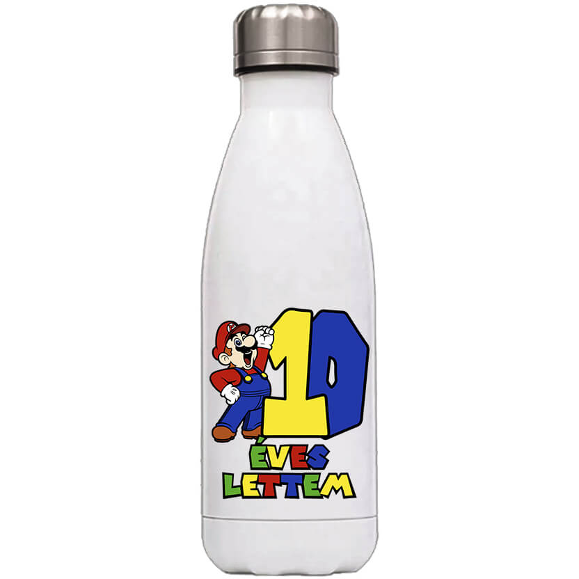 10 éves lettem Super Mario – Klasszikus fém kulacs. Kétrétegű, fehér színű, szürke fém zárókupakkal, 500ml-es méretben. Praktikus és még jól is néz ki! A nyomat nagyon jó színtartó és kopásálló. A kulacsot teszteltük, és bármerre forgatjuk nem ereszti a tárolt folyadékot. Mi is ezt használjuk nap, mint nap. 10 éves lettem Super Mario – Kulacs Super Mario rajongóknak, 10 éves szülinaposoknak. Egyedi ajándékok, póló tervezés a Pólóplanet webáruház oldalán.