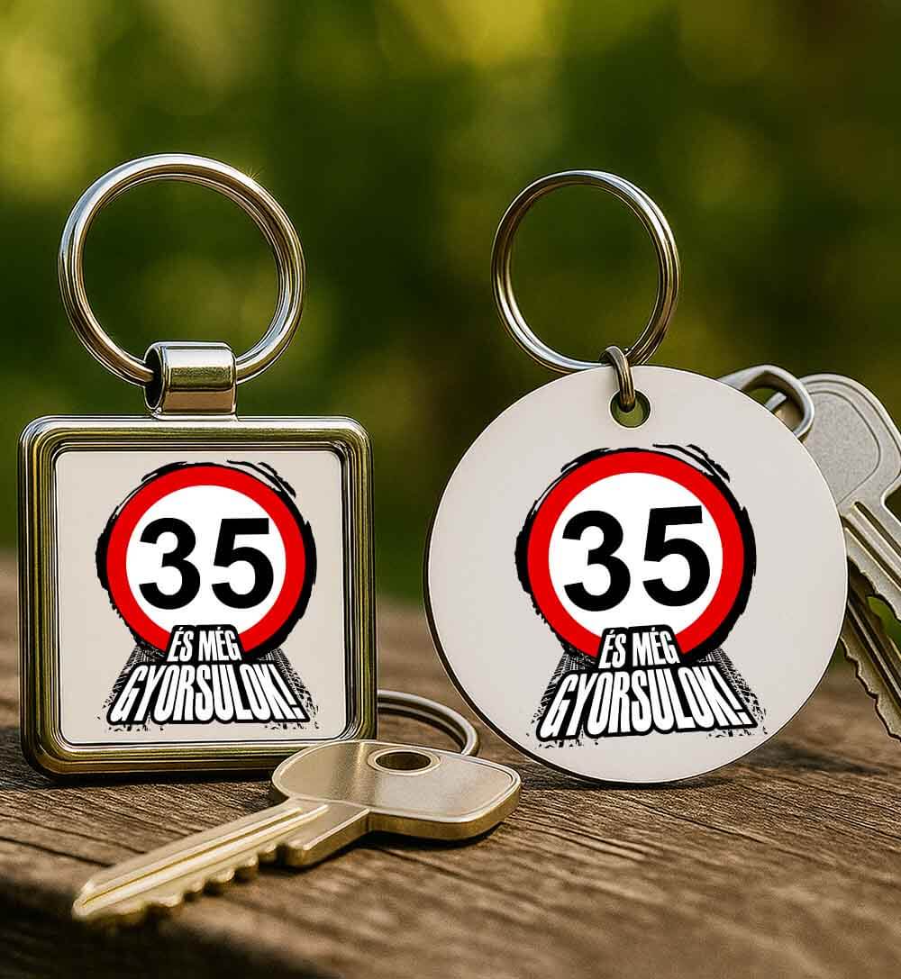 Tedd különlegessé mindennapjaidat ezzel az egyedi 35 éves születésnap és még gyorsulok kulcstartóval.