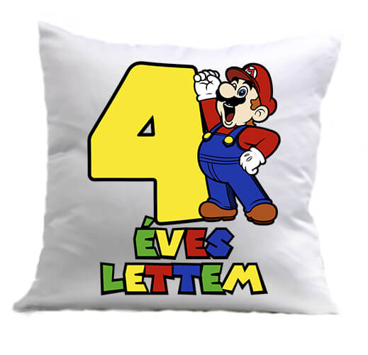 4 éves lettem Super Mario – Párna. A párnahuzat selymes tapintású pihe-puha, tartós, fényes, szatén anyag. A huzat anyagvastagsága 165g/m2. A párnahuzat cipzárral zárható. A párnahuzat és a párna mérete mérete 40 x 40 cm-es. 4 éves lettem Super Mario – Párna Super Mario rajongóknak, 4 éves szülinaposoknak. Egyedi nyomtatás, párna nyomtatás a Pólóplanet webshopjában.