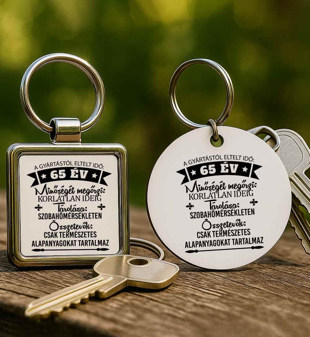 Stílusos és tartós 65 éves születésnap – Kulcstartó, amely tökéletes mindennapi kiegészítő.