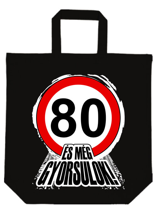 80 éves születésnap és még gyorsulok vászontáska – Tartós és stílusos, egyedi nyomattal