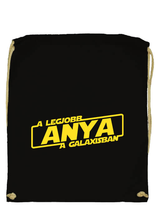 A legjobb anya a galaxisban – Basic tornazsák. A tornazsák vagy hátizsák kényelmes és praktikus kiegészítő a mindennapokban. 140 g/m2 anyagvastagságú, 100% pamutvászon, összehúzható hordozópánttal, megerősített pántnyílással és hímzett fűzőlyukkal. Rendkívül erős, strapabíró anyag. Nagy igénybevételnek is kitehető. A legjobb anya a galaxisban – Basic tornazsák anyáknak, a család szívének. Egyedi nyomtatás, tornazsák nyomtatás a Pólóplanet webshopjában.