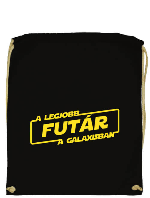 A legjobb futár a galaxisban – Basic tornazsák. A tornazsák vagy hátizsák kényelmes és praktikus kiegészítő a mindennapokban. 140 g/m2 anyagvastagságú, 100% pamutvászon, összehúzható hordozópánttal, megerősített pántnyílással és hímzett fűzőlyukkal. Rendkívül erős, strapabíró anyag. Nagy igénybevételnek is kitehető. A legjobb futár a galaxisban – Basic tornazsák csomagszállító legendáknak. Egyedi nyomtatás, tornazsák nyomtatás a Pólóplanet webshopjában.