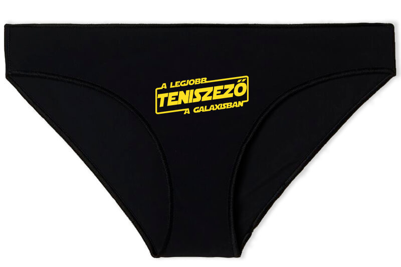 A legjobb teniszező a galaxisban – Női bugyi. A bugyi hagyományos szabású, de mégis szexi. Kényelmes viseletet biztosít, selymes tapintású.  Anyaga 95% pamut és 5% elasztán. A legjobb teniszező a galaxisban – Női bugyi a teniszpálya királyainak. Fehérnemű, bugyi, boxer a Pólóplanet webáruház oldalán.