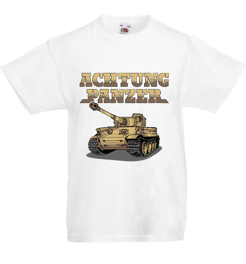 Achtung Panzer – Gyerek póló. Kényelmes lengébb viselet. Anyaga 100% pamut, 160g/m2 anyagvastagságú, tartós anyag. A szürke színű póló anyaga 95% pamut és 5% poliészter. FIGYELEM! Rendelés előtt mindenképp ellenőrizd a mérettáblázatot, mert gyártónként eltérhetnek a méretek! A 100% pamut póló mosás után minimálisan összemehet. A mérettáblázatot alul találod. Achtung Panzer – Gyerek póló tank rajongóknak. Póló nyomtatás, póló tervezés a Pólóplanet webáruház oldalán.