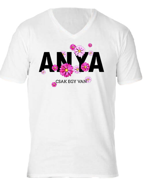Anya csak egy van – Férfi V nyakú póló . Férfi V nyakú rövid ujjú póló. Kényelmes viselet, bársonyos tapintású. Anyaga 100% gyűrűs fonású pamut, 185g/m2 , a fehér színű 180g/m2 anyagvastagságú, tartós anyag. FIGYELEM! Rendelés előtt mindenképp ellenőrizd a mérettáblázatot, mert gyártónként eltérhetnek a méretek. A 100% pamut póló mosás után minimálisan összemehet. A mérettáblázatot alul találod. Anya csak egy van – Férfi V nyakú póló anyának, mamának, édesanyának, anyukának. Póló nyomtatás, póló tervezés a Pólóplanet webáruház oldalán.