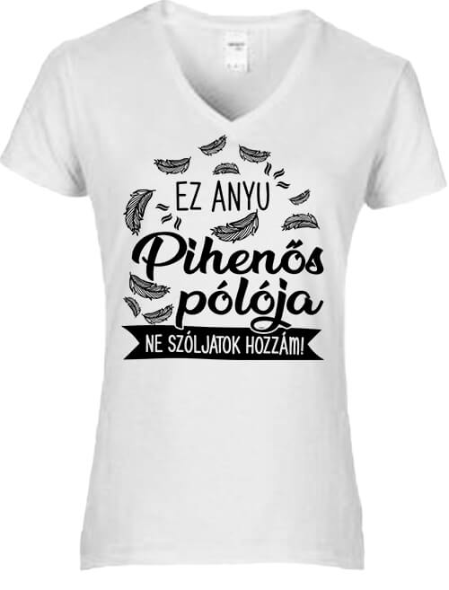 Anyu pihenős pólója – Női V nyakú póló . Női V nyakú rövid ujjú póló. Kényelmes viselet, bársonyos tapintású. Anyaga 100% gyűrűs fonású pamut, 185g/m2, a fehér színű 180g/m2 anyagvastagságú, tartós anyag. Testhez álló szabású. FIGYELEM! Rendelés előtt mindenképp ellenőrizd a mérettáblázatot, mert gyártónként eltérhetnek a méretek! A 100% pamut póló mosás után minimálisan összemehet. A mérettáblázatot alul találod. Anyu pihenős pólója – Női V nyakú póló anyunak, anyucinak. Egyedi ajándékok, pólóra nyomtatás a Pólóplanet webáruház oldalán.