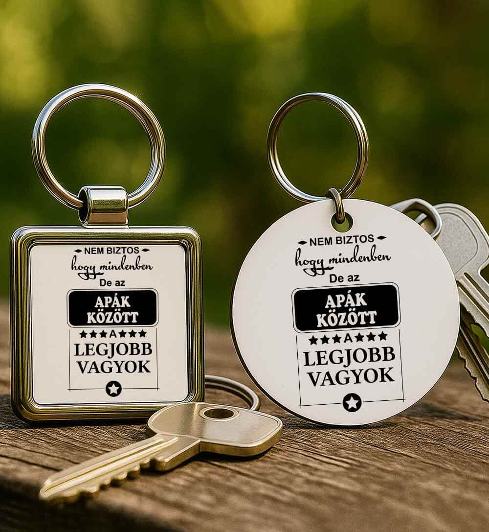 Stílusos és tartós Apák között a legjobb – Kulcstartó, amely tökéletes mindennapi kiegészítő.