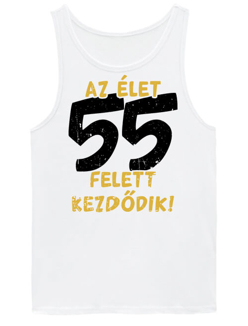 Az élet 55 felett – Férfi ujjatlan póló, atléta. Kényelmes viselet, bársonyos, selymes tapintású. Anyaga 100% fésült pamut, a szürke színű póló 85% fésült pamut és 15% viszkóz 150g/m2 anyagvastagságú, tartós anyag. FIGYELEM! Rendelés előtt mindenképp ellenőrizd a mérettáblázatot, mert gyártónként eltérhetnek a méretek. A 100% pamut trikó mosás után minimálisan összemehet. A mérettáblázatot alul találod. Az élet 55 felett – Férfi ujjatlan póló 55 éves születésnaposoknak. Póló nyomtatás, póló tervezés a Pólóplanet webáruház oldalán.