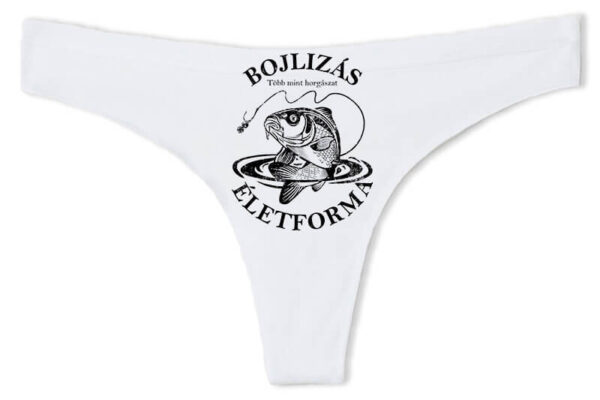 Bojlizás életforma – Tanga. A tanga bugyi szexi és kényelmes ráadásul selymes tapintású fehérnemű. Anyaga 95% pamut és 5% elasztán. Bojlizás életforma – Tanga alsónemű horgászoknak, pecásoknak. Fehérnemű nyomtatás, bugyi nyomtatás a Pólóplanet webáruház oldalán.