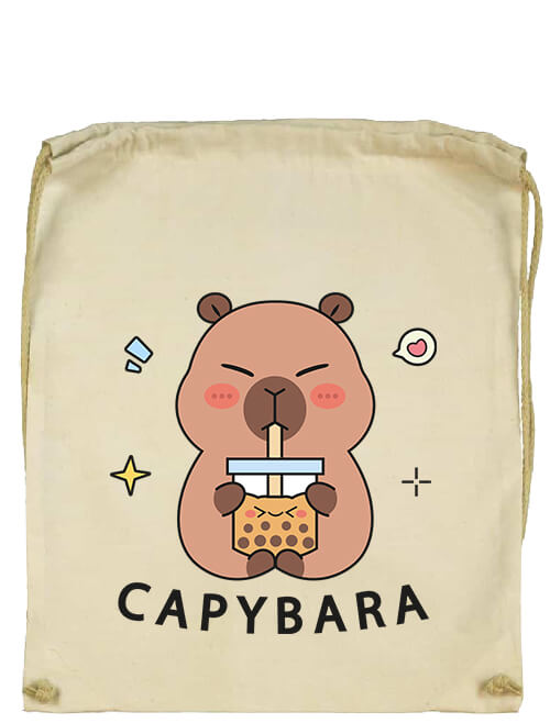 Capybara kávé – Basic tornazsák. A tornazsák vagy hátizsák kényelmes és praktikus kiegészítő a mindennapokban. 140 g/m2 anyagvastagságú, 100% pamutvászon, összehúzható hordozópánttal, megerősített pántnyílással és hímzett fűzőlyukkal. Rendkívül erős, strapabíró anyag. Nagy igénybevételnek is kitehető. Capybara kávé – Basic tornazsák mosolygós mindennapokra Capybara rajongóknak. Egyedi nyomtatás, tornazsák nyomtatás a Pólóplanet webshopjában.