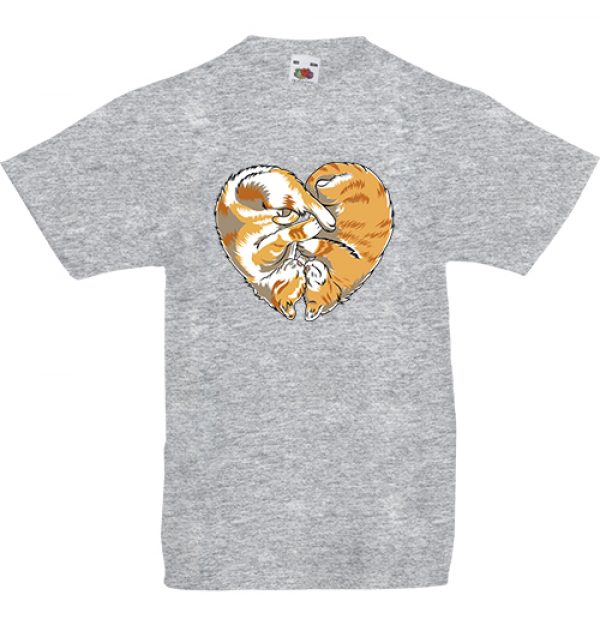Cica szív – Gyerek póló. Kényelmes lengébb viselet. Anyaga 100% pamut, 160g/m2 anyagvastagságú, tartós anyag. A szürke színű póló anyaga 95% pamut és 5% poliészter. FIGYELEM! Rendelés előtt mindenképp ellenőrizd a mérettáblázatot, mert gyártónként eltérhetnek a méretek! A 100% pamut póló mosás után minimálisan összemehet. A mérettáblázatot alul találod.Cica szív – Gyerek póló kutyás gazdiknak és bulldog fanoknak. Egyedi ajándékok, póló nyomtatás a Pólóplanet webáruház oldalán.