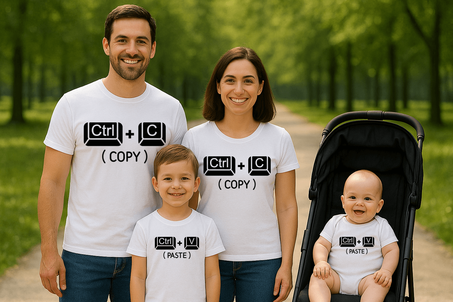 „Ctrl C Ctrl V – Copy Paste – Szülő gyerek családi póló szett”