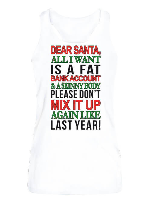 Dear Santa – Női ujjatlan póló, atléta. Kényelmes viselet, bársonyos, selymes tapintású. Anyaga 100% fésült pamut, a szürke színű póló 85% fésült pamut és 15% viszkóz 150g/m2 anyagvastagságú, tartós anyag. FIGYELEM! Rendelés előtt mindenképp ellenőrizd a mérettáblázatot, mert gyártónként eltérhetnek a méretek. A 100% pamut trikó mosás után minimálisan összemehet. A mérettáblázatot alul találod. Dear Santa – Női ujjatlan póló jófejeknek karácsonyra. Póló nyomtatás, póló tervezés a Pólóplanet webáruház oldalán.