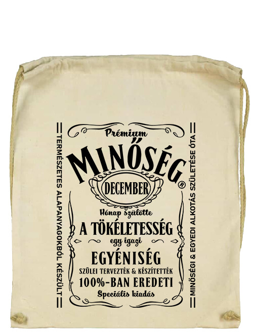 Decemberi születésnap – Basic tornazsák. A tornazsák kényelmes és praktikus kiegészítő a mindennapokban. 140 g/m2 anyagvastagságú, 100% pamutvászon, összehúzható hordozópánttal, megerősített pántnyílással és hímzett fűzőlyukkal. Rendkívül erős, strapabíró anyag. Nagy igénybevételnek is kitehető. A nyomat digitális nyomtatással (DTG technológia) készül közvetlen a hátizsák anyagába ezáltal tartós élénk nyomatot biztosít. Mi is teszteltük és ez jött be a legjobban. Nézd meg és fedezd fel több 1000 termékünket is az alábbi linkre kattintva! Decemberi születésnap – Basic tornazsák decemberi szülinaposoknak. Egyedi nyomtatás, tornazsák nyomtatás a Pólóplanet webshopjában.