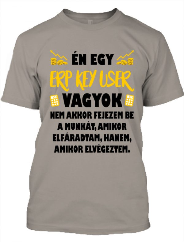 ERP key user – Férfi póló. Klasszikus, rövid ujjú póló kerek nyakkivágással. Egész évben kényelmes viselet, mert a minősége kiváló. Ezt a pólót tutira imádni fogod. Anyaga 100% pamut, a szürke színű póló 85% pamut és 15% viszkóz, 190g/m2 anyagvastagságú, tartós anyag. Sok színből válogathatsz. Ha jobban szereted a bővebb viseletet, rendelj egy-két számmal nagyobbat! A nyomat digitális nyomtatással (DTG technológia) készül közvetlen a póló anyagába ezáltal tartós, élénk nyomatot biztosít. Magunk is teszteltük és ez jött be a legjobban. FIGYELEM! Rendelés előtt mindenképp ellenőrizd a mérettáblázatot, mert gyártónként eltérhetnek a méretek! A 100% pamut póló mosás után minimálisan összemehet. Nézd meg a többi termékünket is az alábbi linkre kattintva. ERP key user – Férfi póló ERP felhasználóknak. Egyedi ajándékok, póló tervezés a Pólóplanet webáruház oldalán.