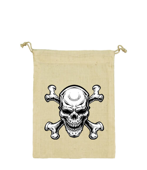 Halálfej – Vászonzacskó 100% pamutvászonból készült húzózsinóros kivitelben, ideális élelmiszerek és kisebb tárgyak tárolására, újrahasználható, környezetbarát csomagolásként vagy egyedi logóval nyomtatott reklámajándékként cégeknek és magánszemélyeknek – praktikus, fenntartható és stílusos megoldás.