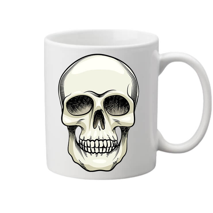 Koponya – Bögre. Klasszikus extra fényes fehér bögre 3dl-es méretben. Mikrózható és mosogatógépben mosogatható. Hosszan tartó színtartás és kopásállóság. Koponya – Bögre halloweenra, az év legrémesebb éjszakájára mindenkinek. Egyedi ajándékok, póló nyomtatás a Pólóplanet webáruház oldalán.
