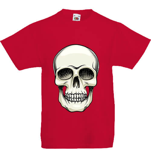 Koponya – Gyerek póló. Kényelmes lengébb viselet. Anyaga 100% pamut, 160g/m2 anyagvastagságú, tartós anyag. A szürke színű póló anyaga 95% pamut és 5% poliészter. FIGYELEM! Rendelés előtt mindenképp ellenőrizd a mérettáblázatot, mert gyártónként eltérhetnek a méretek! A 100% pamut póló mosás után minimálisan összemehet. A mérettáblázatot alul találod. Koponya – Gyerek póló halloweenra, az év legrémesebb éjszakájára mindenkinek. Póló nyomtatás, póló tervezés a Pólóplanet webáruház oldalán.