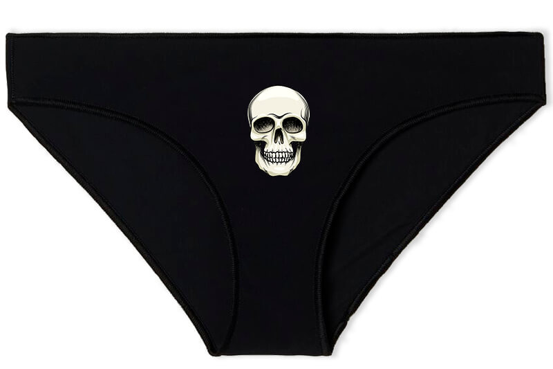Koponya – Női bugyi. A bugyi hagyományos szabású, de mégis szexi. Kényelmes viseletet biztosít, selymes tapintású. Anyaga 95% pamut és 5% elasztán. Koponya – Női bugyi halloweenra, az év legrémesebb éjszakájára mindenkinek. Fehérnemű, bugyi, boxer a Pólóplanet webáruház oldalán.