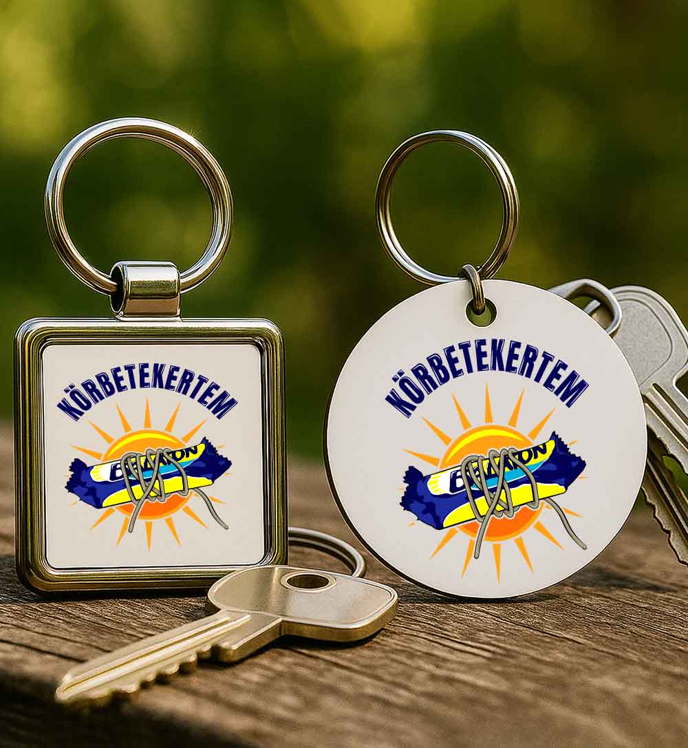 Fém kulcstartó (négyzet), MDF kulcstartó (kerek)