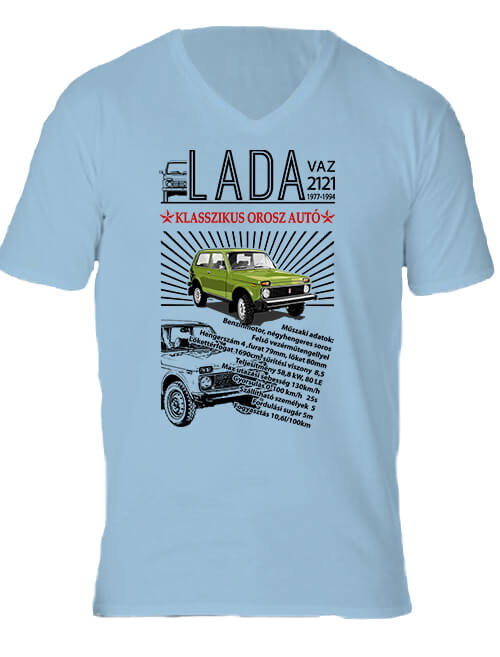 Lada Niva – Férfi V nyakú póló . Férfi V nyakú rövid ujjú póló. Kényelmes viselet, bársonyos tapintású. Anyaga 100% gyűrűs fonású pamut, 185g/m2 , a fehér színű 180g/m2 anyagvastagságú, tartós anyag. FIGYELEM! Rendelés előtt mindenképp ellenőrizd a mérettáblázatot, mert gyártónként eltérhetnek a méretek. A 100% pamut póló mosás után minimálisan összemehet. A mérettáblázatot alul találod. Lada Niva – Férfi V nyakú póló Ladásoknak, régi autó kedvelőknek, Zsigulisoknak, Zsigásoknak. Egyedi nyomtatás, póló nyomás a Pólóplanet webshopjában.