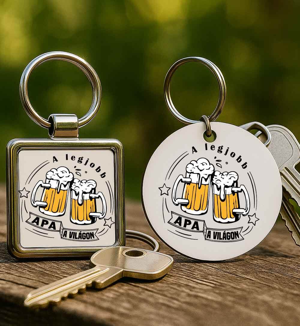 Tedd különlegessé mindennapjaidat ezzel az egyedi Legjobb apa sörrel kulcstartóval.