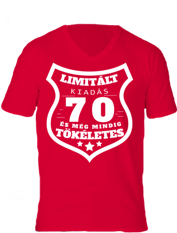 Limitált kiadás 70 . Férfi V nyakú rövid ujjú póló. Kényelmes viselet, bársonyos tapintású. Anyaga 100% gyűrűs fonású pamut, 185g/m2 , a fehér színű 180g/m2 anyagvastagságú, tartós anyag. FIGYELEM! Rendelés előtt mindenképp ellenőrizd a mérettáblázatot, mert gyártónként eltérhetnek a méretek! A 100% pamut póló mosás után minimálisan összemehet. A mérettáblázatot alul találod. Limitált kiadás 70 – Férfi V nyakú póló 70 éveseknek és szülinaposoknak. Egyedi ajándékok, póló nyomtatás a Pólóplanet webáruház oldalán.