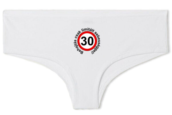 Limitált sebességgel 30 éves születésnap – Francia bugyi. A bugyi francia szabású, nagyon szexi. Kényelmes viseletet biztosít, selymes tapintású. Anyaga 95% pamut és 5% elasztán. Limitált sebességgel 30 éves születésnap – Francia bugyi szülinaposoknak, születésnapos ünnepelteknek. Fehérnemű, bugyi, boxer a Pólóplanet webáruház oldalán.