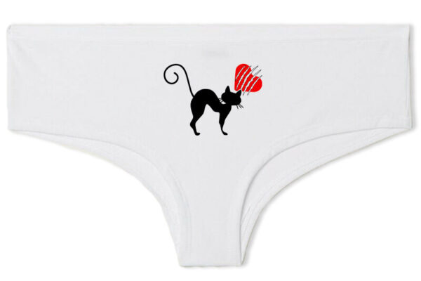 Macskamánia – Francia bugyi. A bugyi francia szabású, nagyon szexi. Kényelmes viseletet biztosít, selymes tapintású. Anyaga 95% pamut és 5% elasztán. Macskamánia – Francia bugyi cicásoknak és szerelmeseknek. Fehérnemű nyomtatás, bugyi nyomtatás a Pólóplanet webáruház oldalán.