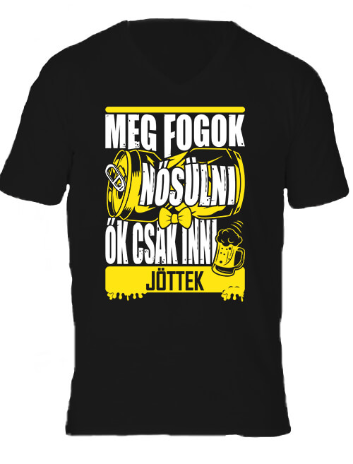 Megnősülök legénybúcsú – Férfi V nyakú póló. Férfi V nyakú, rövid ujjú póló. Kényelmes viselet, bársonyos tapintású. Anyaga 100% gyűrűs fonású pamut, 185g/m2, a fehér színű 180g/m2 anyagvastagságú, tartós anyag. FIGYELEM! Rendelés előtt mindenképp ellenőrizd a mérettáblázatot, mert gyártónként eltérhetnek a méretek. A 100% pamut póló mosás után minimálisan összemehet. A mérettáblázatot alul találod. Megnősülök legénybúcsú – Férfi V nyakú póló vőlegényeknek az utolsó nagy nap előtti bulira. Póló nyomtatás, póló tervezés a Pólóplanet webáruház oldalán.