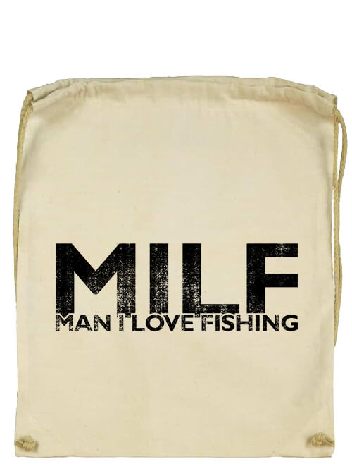 MILF fishing – Basic tornazsák. A tornazsák vagy hátizsák kényelmes és praktikus kiegészítő a mindennapokban. 140 g/m2 anyagvastagságú, 100% pamutvászon, összehúzható hordozópánttal, megerősített pántnyílással és hímzett fűzőlyukkal. Rendkívül erős, strapabíró anyag. Nagy igénybevételnek is kitehető.MILF fishing – Basic tornazsák horgászoknak, pecásoknak. Póló nyomtatás, póló tervezés a Pólóplanet webáruház oldalán.
