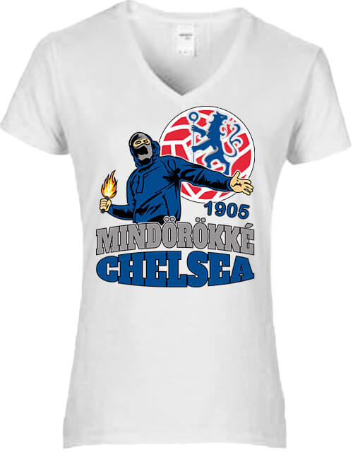 Mindörökké Chelsea – Női V nyakú póló . Női V nyakú rövid ujjú póló. Kényelmes viselet, bársonyos tapintású. Anyaga 100% gyűrűs fonású pamut, 185g/m2, a fehér színű 180g/m2 anyagvastagságú, tartós anyag. Testhez álló szabású. FIGYELEM! Rendelés előtt mindenképp ellenőrizd a mérettáblázatot, mert gyártónként eltérhetnek a méretek! A 100% pamut póló mosás után minimálisan összemehet. A mérettáblázatot alul találod. Mindörökké Chelsea – Női V nyakú póló Chelsea drukkereknek. Egyedi ajándékok, pólóra nyomtatás a Pólóplanet webáruház oldalán.