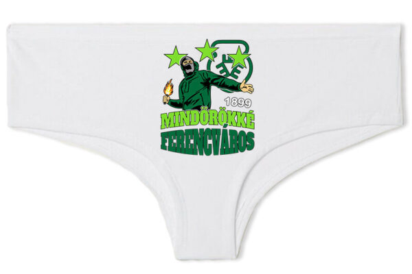 Mindörökké Ferencváros – Francia bugyi. A bugyi francia szabású, nagyon szexi. Kényelmes viseletet biztosít, selymes tapintású. Anyaga 95% pamut és 5% elasztán. Mindörökké Ferencváros – Francia bugyi Fradi drukkereknek, FTC szurkolóknak. Fehérnemű nyomtatás, bugyi nyomtatás a Pólóplanet webáruház oldalán.