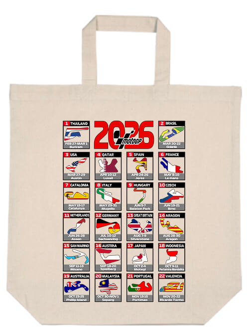 MotoGP 2026 versenynaptár vászontáska – Tartós és stílusos, egyedi nyomattal