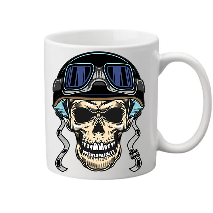 Motoros koponya – Bögre. Klasszikus extra fényes fehér bögre 3dl-es méretben. Mikrózható és mosogatógépben mosogatható. Hosszan tartó színtartás és kopásállóság. Motoros koponya – Bögre halloweenra, az év legrémesebb éjszakájára mindenkinek. Egyedi ajándékok, póló nyomtatás a Pólóplanet webáruház oldalán.