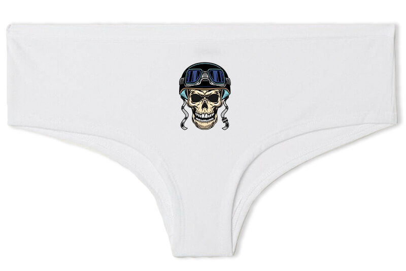 Motoros koponya – Francia bugyi. A bugyi francia szabású, nagyon szexi. Kényelmes viseletet biztosít, selymes tapintású. Anyaga 95% pamut és 5% elasztán. Motoros koponya – Francia bugyi halloweenra, az év legrémesebb éjszakájára mindenkinek. Fehérnemű, bugyi, boxer a Pólóplanet webáruház oldalán.