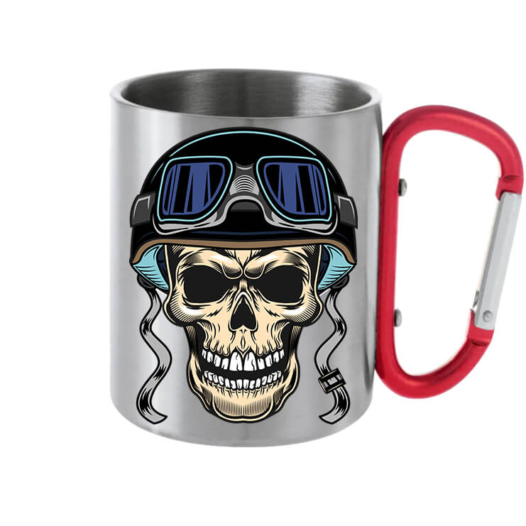 Motoros koponya – Karabineres bögre. A klasszikus bögre modern verziója. Kétrétegű szürke fém bögre karabineres, kampózáras füllel, 3dl-es méretben. Praktikus és még jól is néz ki! Színtartása és kopásállósága kiváló. Motoros koponya – Karabineres bögre halloweenra, az év legrémesebb éjszakájára mindenkinek. Egyedi ajándékok, bögre nyomtatás a Pólóplanet webáruház oldalán.