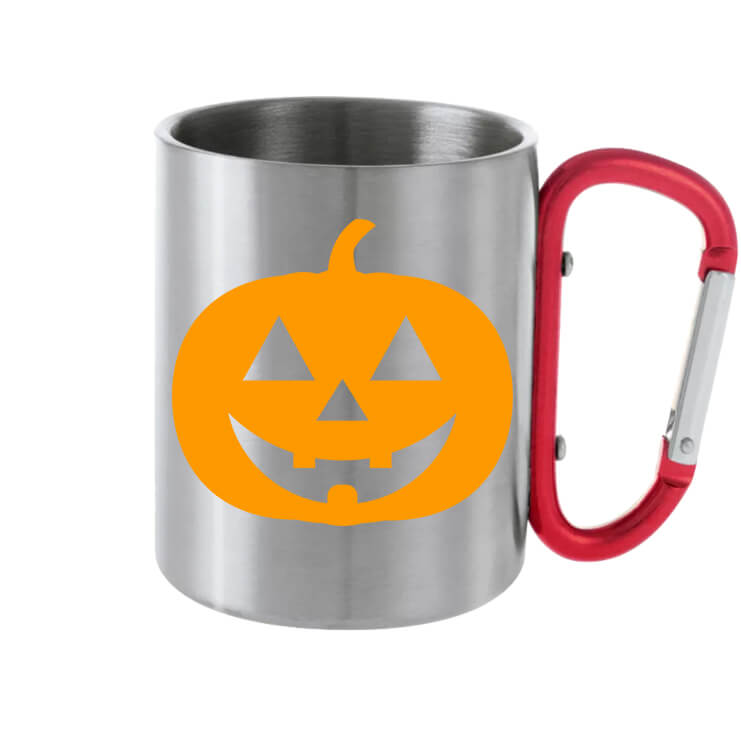 Ragyogó tökfej – Karabineres bögre. A klasszikus bögre modern verziója. Kétrétegű szürke fém bögre karabineres, kampózáras füllel, 3dl-es méretben. Praktikus és még jól is néz ki! Színtartása és kopásállósága kiváló. Ragyogó tökfej – Karabineres bögre halloweenra, az év legrémesebb éjszakájára mindenkinek. Egyedi ajándékok, bögre nyomtatás a Pólóplanet webáruház oldalán.