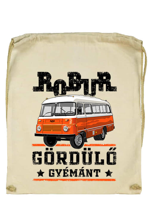 Robur gördülő gyémánt – Basic tornazsák. A tornazsák vagy hátizsák kényelmes és praktikus kiegészítő a mindennapokban. 140 g/m2 anyagvastagságú, 100% pamutvászon, összehúzható hordozópánttal, megerősített pántnyílással és hímzett fűzőlyukkal. Rendkívül erős, strapabíró anyag. Nagy igénybevételnek is kitehető. Robur gördülő gyémánt – Basic tornazsák Régi autóbusz kedvelőknek, retro autó imádóknak. Egyedi nyomtatás, tornazsák nyomtatás a Pólóplanet webshopjában.