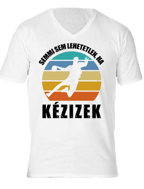 Semmi sem lehetetlen kézilabda – Férfi V nyakú póló. Férfi V nyakú rövid ujjú póló. Kényelmes viselet, bársonyos tapintású. Anyaga 100% gyűrűs fonású pamut, 185g/m2, a fehér színű 180g/m2 anyagvastagságú, tartós anyag. FIGYELEM! Rendelés előtt mindenképp ellenőrizd a mérettáblázatot, mert gyártónként eltérhetnek a méretek. A 100% pamut póló mosás után minimálisan összemehet. A mérettáblázatot alul találod. Semmi sem lehetetlen kézilabda – Férfi V nyakú póló kéziseknek, kézilabdásoknak. Póló nyomtatás, póló tervezés a Pólóplanet webáruház oldalán.