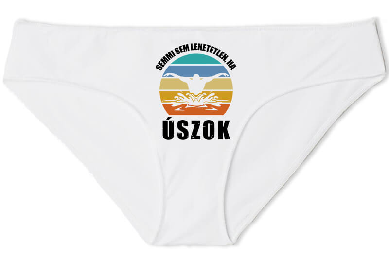 Semmi sem lehetetlen úszás – Női bugyi. A bugyi hagyományos szabású, de mégis szexi. Kényelmes viseletet biztosít, selymes tapintású. Anyaga 95% pamut és 5% elasztán. Semmi sem lehetetlen úszás – Női bugyi úszóknak. Fehérnemű, bugyi, boxer a Pólóplanet webáruház oldalán.