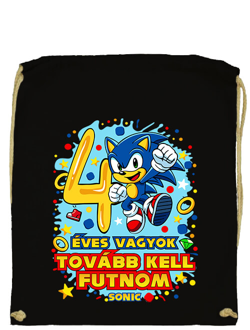 Sonic 4 éves születésnap – Prémium tornazsák. A tornazsák vagy hátizsák kényelmes és praktikus viselet a mindennapokban. 310 g/m2 anyagvastagságú, 100% pamutvászon, összehúzható hordozópánttal, megerősített pántnyílással és hímzett fűzőlyukkal. Rendkívül erős, strapabíró anyag. Bármilyen nagy igénybevételnek is kitehető. Sonic 4 éves születésnap – Prémium tornazsák Sonic rajongóknak, 4 éves szülinaposoknak. Egyedi nyomtatás, tornazsák nyomás a Pólóplanet webshopjában.