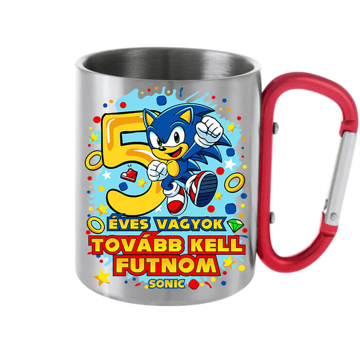 Sonic 5 éves születésnap – Karabineres bögre. A klasszikus bögre modern verziója. Kétrétegű, szürke fém bögre, kampózáras füllel, 3dl-es méretben. Praktikus és még jól is néz ki! A karabiner segítségével könnyen rácsatolhatod a nadrágodra vagy táskádra fesztiválon, túrázáskor vagy akár a hétköznapokban, így mindig kéznél lesz és nem hagyod el. Színtartása és kopásállósága hosszan tartó. A nyomat szublimációs eljárással kerül a bögrére. Mi is teszteltük és ez jött be a legjobban. Nézd meg és fedezd fel több 1000 termékünket is az alábbi linkre kattintva! Sonic 5 éves születésnap – Karabineres bögre Sonic rajongóknak, 5 éves szülinaposoknak. Egyedi ajándékok, bögre nyomtatás a Pólóplanet webáruház oldalán.