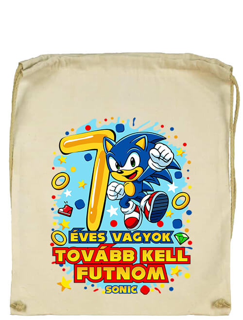Sonic 7 éves születésnap – Basic tornazsák. A tornazsák vagy hátizsák kényelmes és praktikus kiegészítő a mindennapokban. 140 g/m2 anyagvastagságú, 100% pamutvászon, összehúzható hordozópánttal, megerősített pántnyílással és hímzett fűzőlyukkal. Rendkívül erős, strapabíró anyag. Nagy igénybevételnek is kitehető. Sonic 7 éves születésnap – Basic tornazsák Sonic rajongóknak, 7 éves szülinaposoknak. Egyedi nyomtatás, tornazsák nyomtatás a Pólóplanet webshopjában.