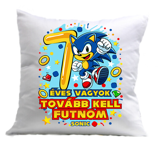Sonic 7 éves születésnap – Párna. A párnahuzat selymes tapintású pihe-puha, tartós, fényes, szatén anyag. A huzat anyagvastagsága 165g/m2. A párnahuzat cipzárral zárható. A párnahuzat és a párna mérete mérete 40 x 40 cm-es. Sonic 7 éves születésnap – Párna Sonic rajongóknak, 7 éves szülinaposoknak. Egyedi nyomtatás, párna nyomtatás a Pólóplanet webshopjában.