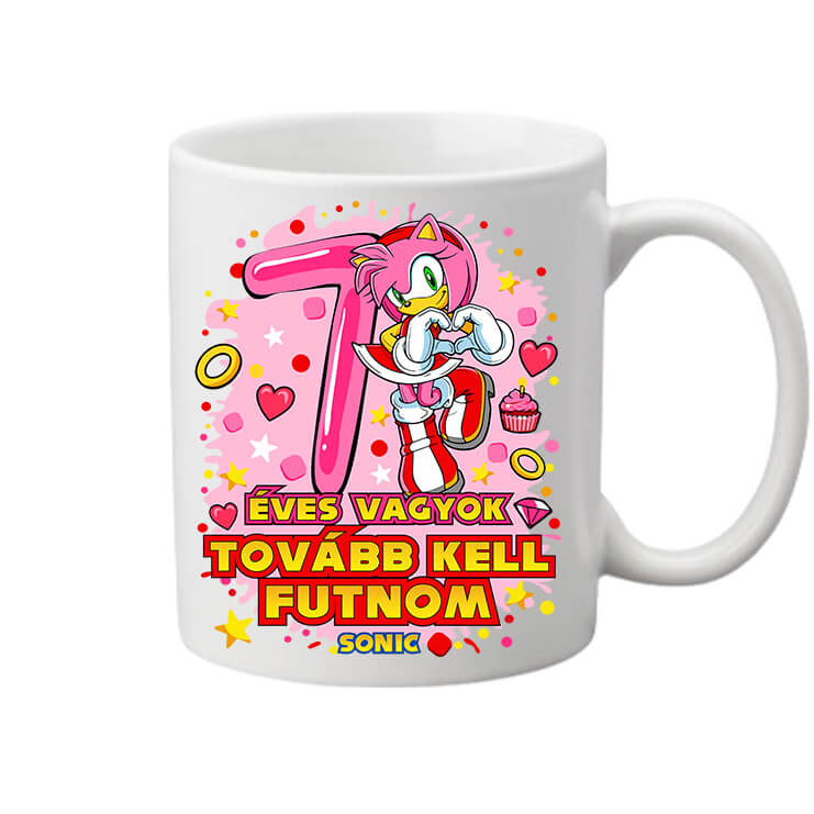 Sonic Amy 7 éves születésnap – Bögre. Klasszikus extra fényes fehér bögre 3dl-es méretben. Mikrózható és mosogatógépben mosogatható. Hosszan tartó színtartás és kopásállóság. Sonic Amy 7 éves születésnap – Bögre Sonic Amy rajongóknak, 7 éves szülinaposoknak. Egyedi ajándékok, póló nyomtatás a Pólóplanet webáruház oldalán.