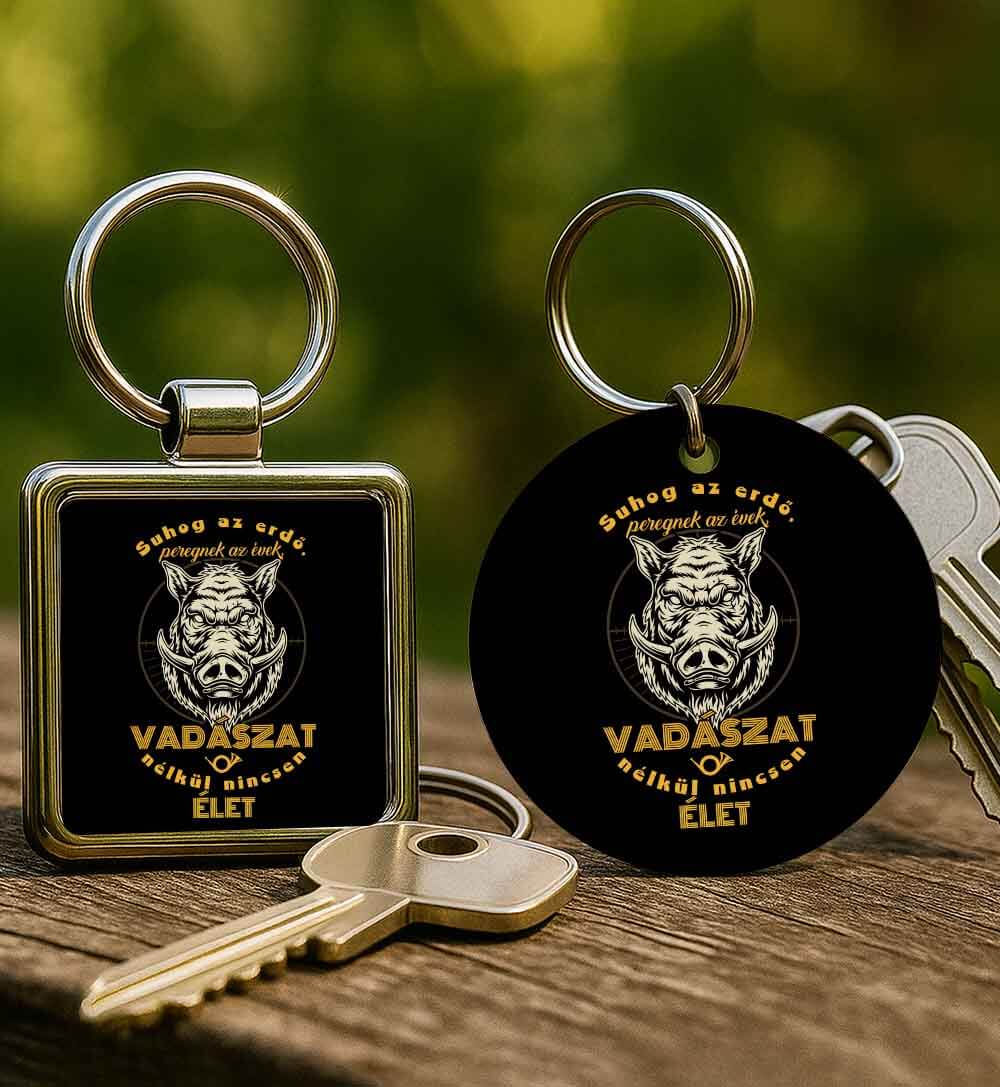 Tedd különlegessé mindennapjaidat ezzel az egyedi Suhog az erdő vaddisznó vadászat kulcstartóval.