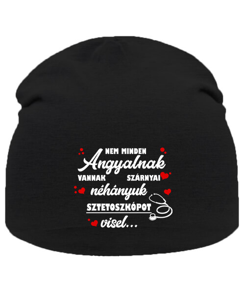 Sztetoszkópos angyal – sapka. Unisex, kétrétegű sapka 95% pamut, 5% elasztán tartalommal. One size méret. Tökéletesen illeszkedik a fejhez az elasztánnak köszönhetően. 24cm széles és 26cm magas. Kényelmes viselet. FIGYELEM! Rendelés előtt mindenképp ellenőrizd a méretet! Sztetoszkópos angyal – sapka a legjobb doktornőknek és orvosoknak. Sapka nyomtatás, tervezés a Pólóplanet webáruház oldalán szuper áron és minőségben, villámgyorsan.